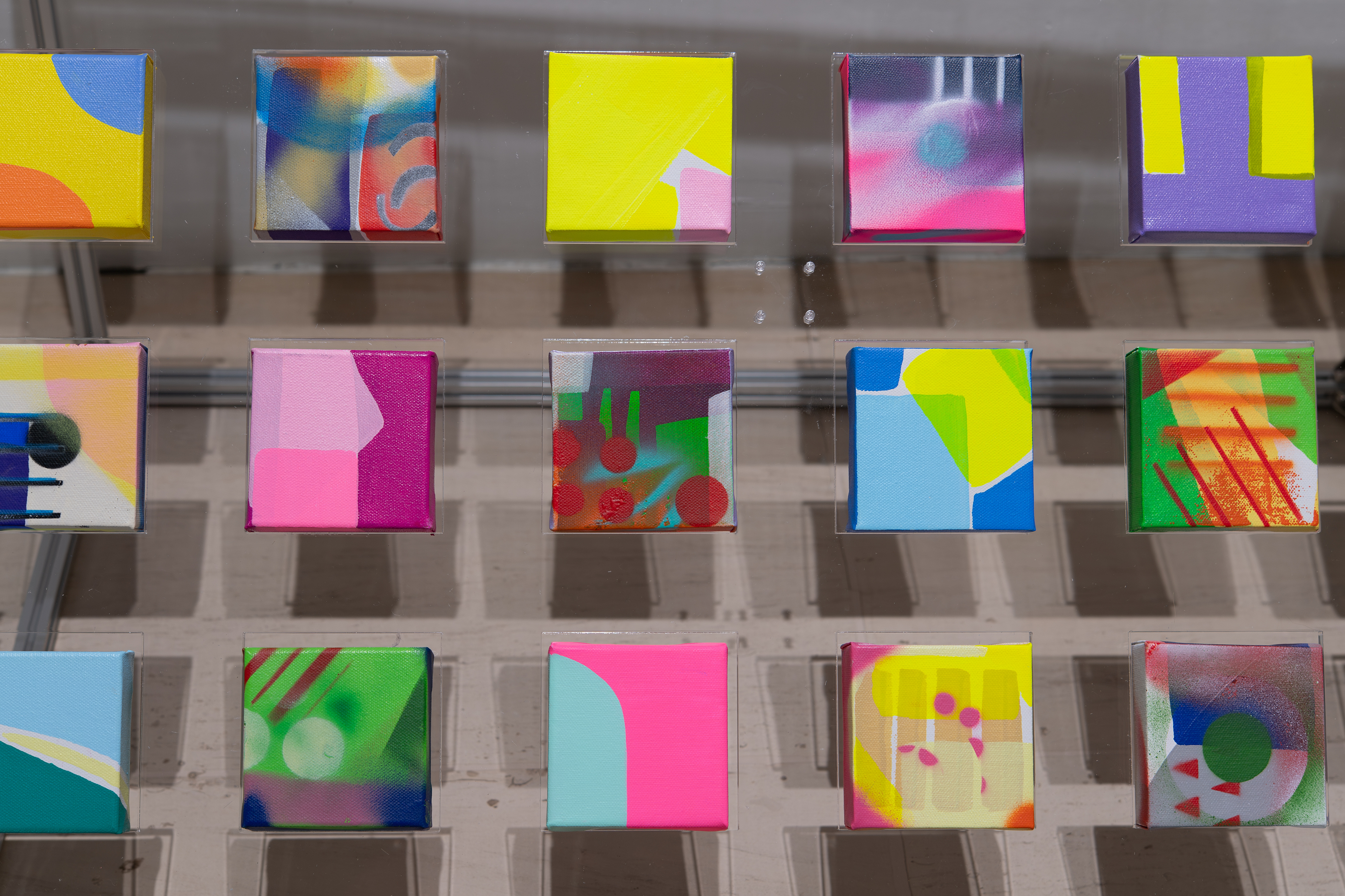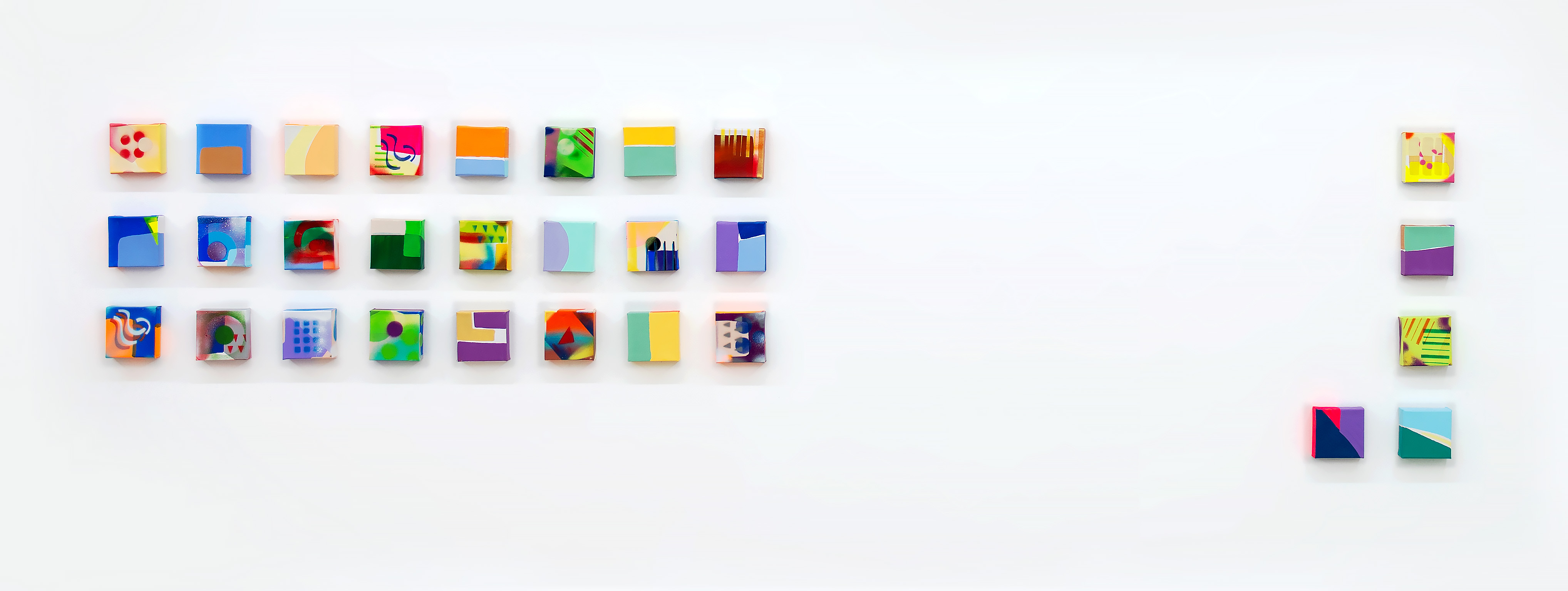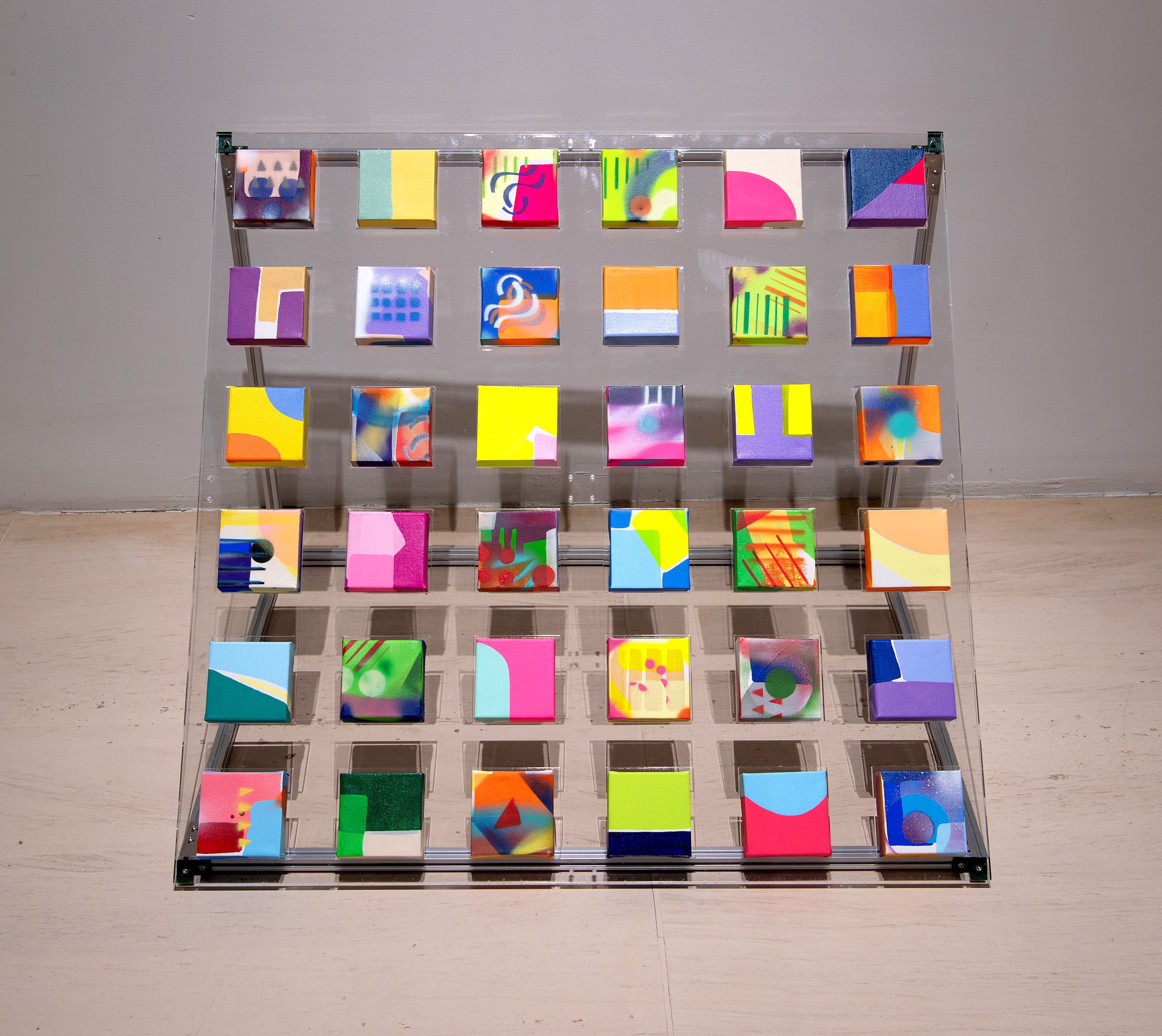 Acrylic on canvas with acrylic sheet, 100 × 100 cm (36 pieces, each 10 × 10 cm)