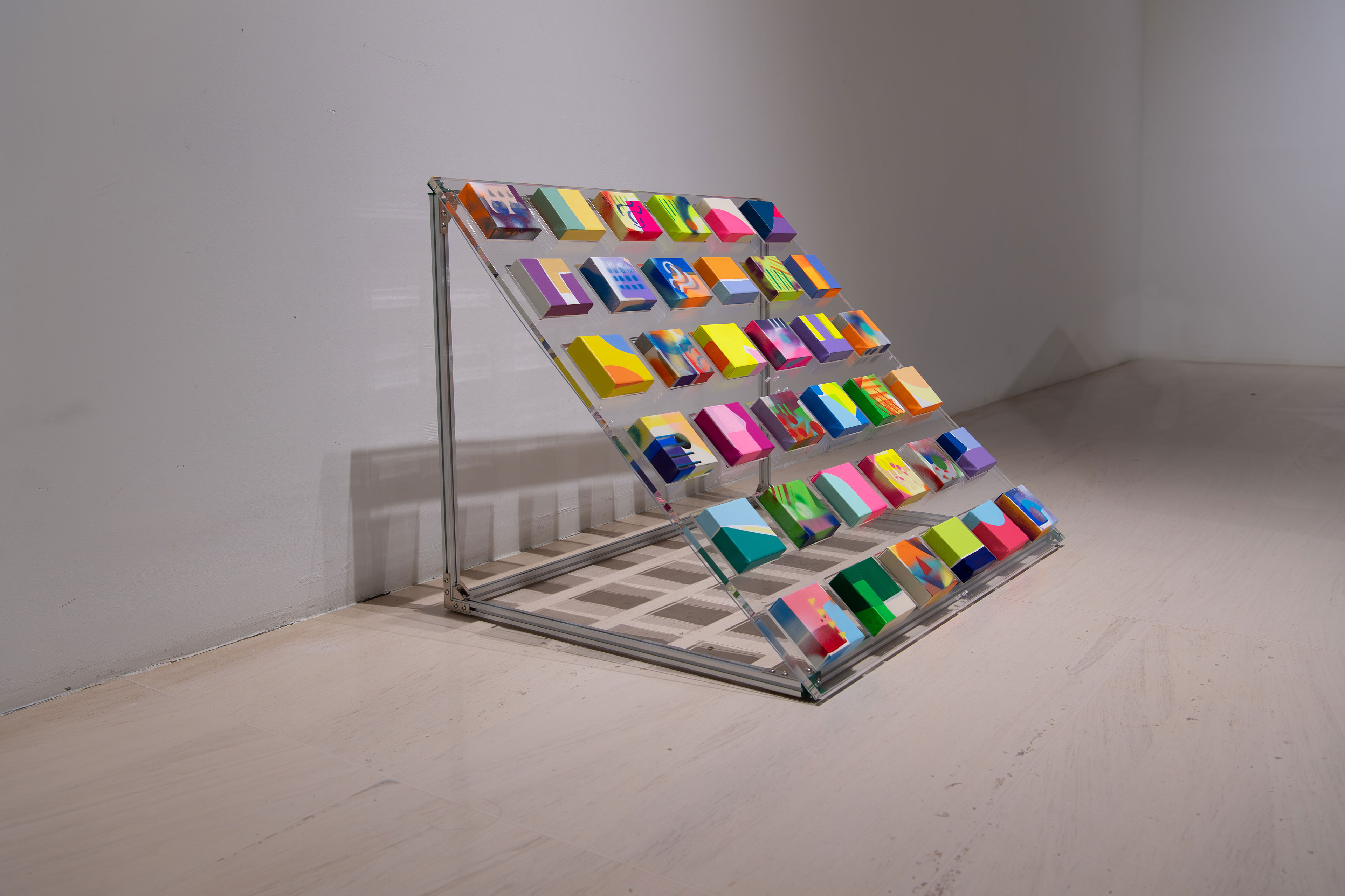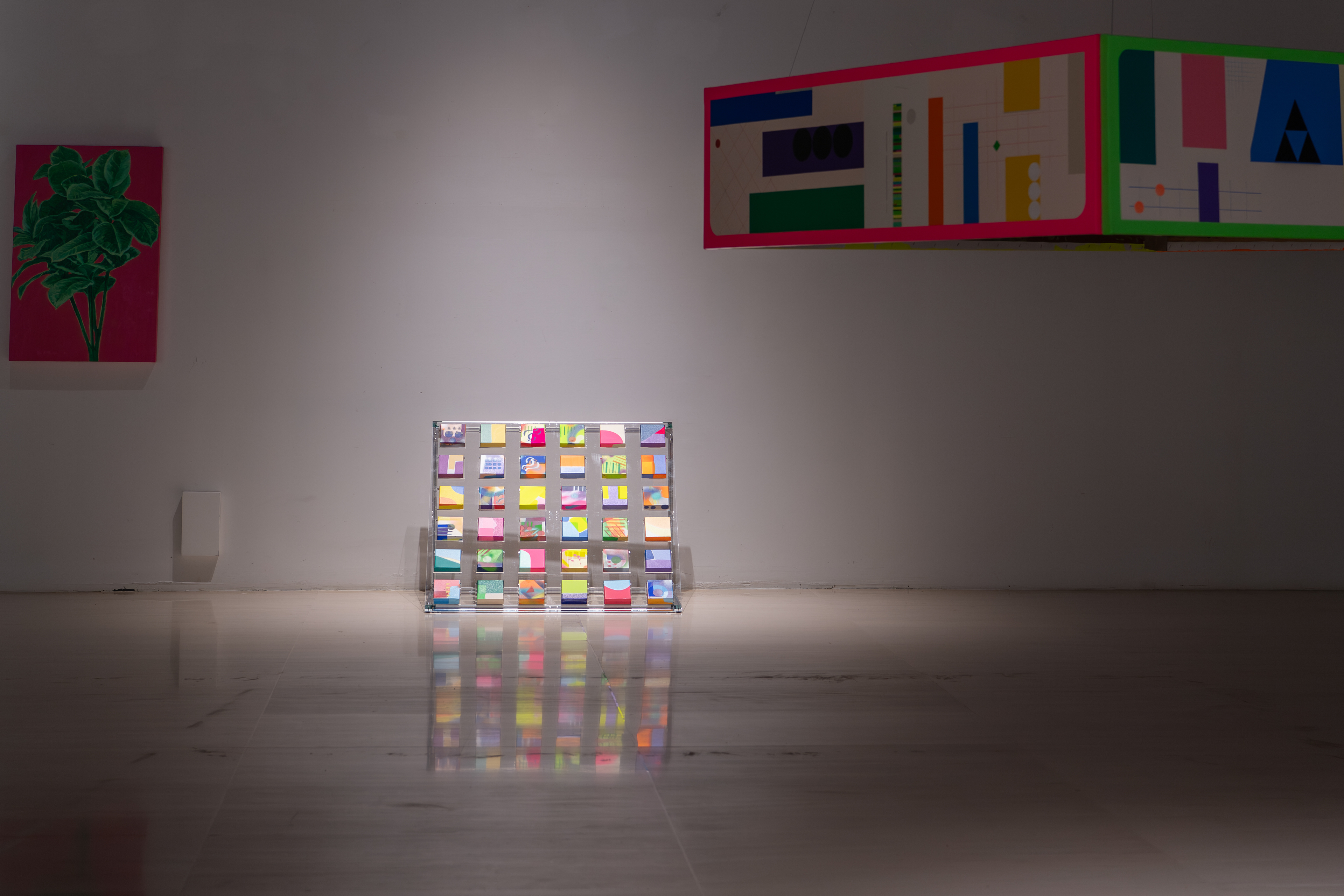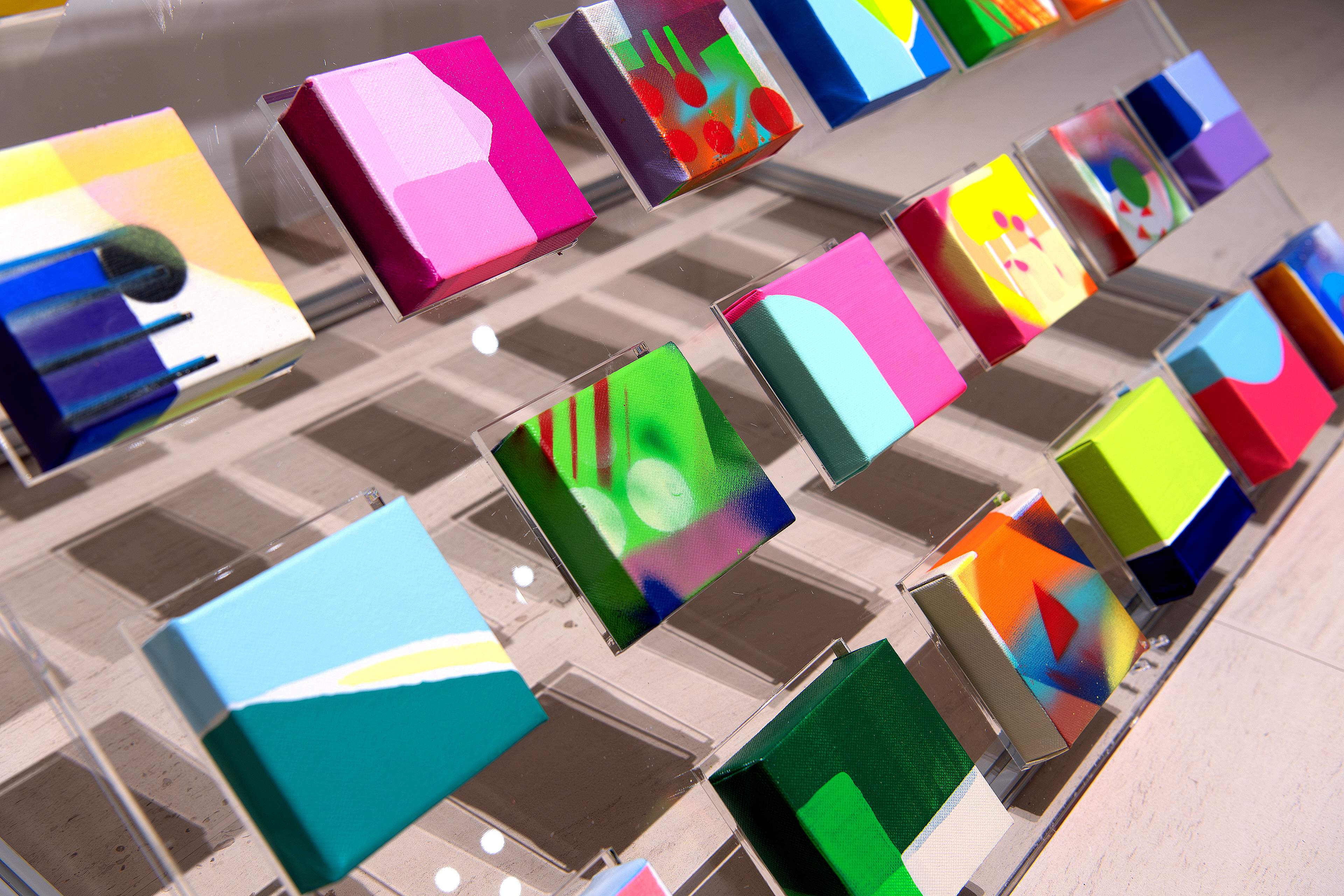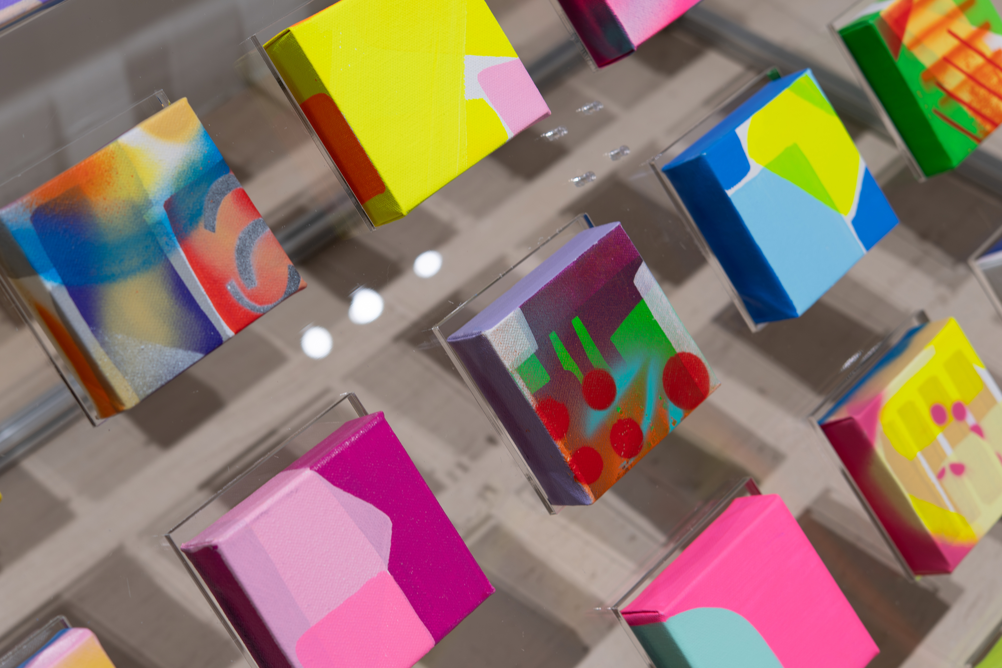 Acrylic on canvas with acrylic sheet, 100 × 100 cm (36 pieces, each 10 × 10 cm)